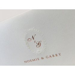 Magnifique faire part gauffrage avec marquage à chaud or cuivré 10.5Cm X 30Cm. Possiblité avec intérieur dorure à chaud.
