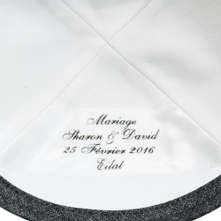 Le lin est la matière noble par excellence! Pour votre cérémonie optez pour la kippa en lin personnalisable. Pour vous réceptions surprenez vos invités et offrez leurs un cadeau en souvenir de votre soirée !